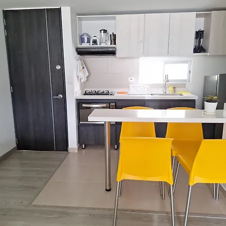 Förutom ett utrustat pentry, erbjuder i lägenheten matplats. El Yopal flygplats är belägen 165 km från den här lägenheten med 2 sovrum.